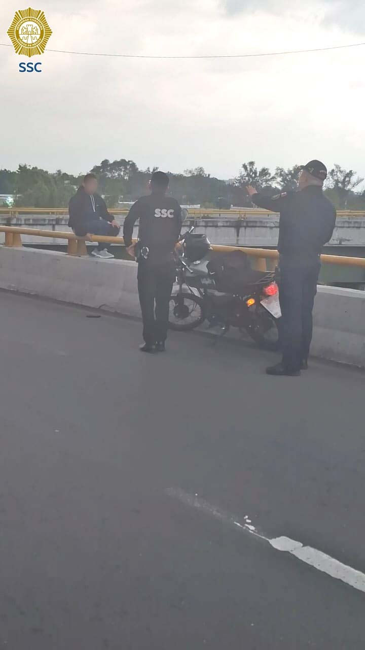 Desde un puente vehicular ubicado en la alcaldía Azcapotzalco, un joven que aparentemente intentaba lanzarse fue resguardado por efectivos de la Secretaría de Seguridad Ciudadana (SSC) de la Ciudad de México. En la acción también participaron paramédicos del Escuadrón de Rescate y Urgencias Médicas (ERUM) y personal del Heroico Cuerpo de Bomberos.